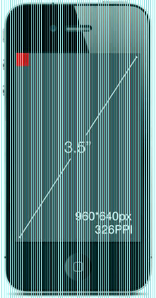 例如iPhone4S如果设置viewport width=device-width,他就会是320px,就像把屏幕分成320份(不是屏幕分辨率的640px哦!)。如果设置一个元素为100px*100px,看起来就是屏幕的100/320,可能如下图所示: