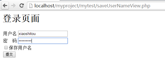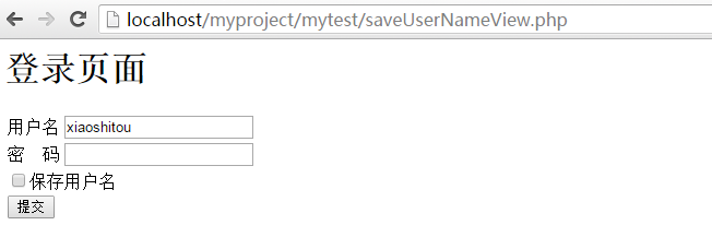 输入用户名,选择保存用户名-->提交-->打印设置Cookie成功-->返回登录页面-->用户名会自动填写(只要访问该登录页面,在Cookie有效期内)