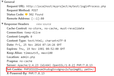 登录验证成功:loginProcess.php 会将用户名保存在session中,并且会向客户端设置Cookie: