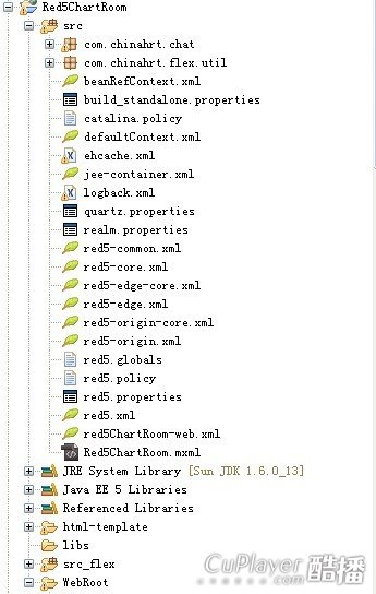 公司最近要在系统中加视频会议的功能,让我探索,我选择了最流行的red5来实现,网上有一对一聊天的demo,找不到多对多聊天的,也没有具体介 绍系统搭建的过程,我通过自己的摸索,将实现的过程和大家一起分享。java的web项目添加flex支持在此不再详述,项目文件结构如图: