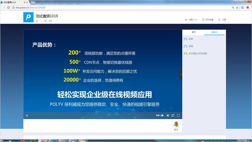 第4步:发起直播后,打开直播的web页面,就可以看到你发布出来的PPT页面了,如下(支持PC端、安卓端、苹果端,也支持微信观看)