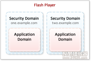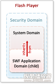 当一个Flash Player的实例初始化的时候,SWF文件加到它对应的安全域内。同时也创建了一个包含了这个文件中所有编译过的ActionScript定义的应用程序域。这个应用程序域就成为安全域下的系统域的第一个子域。Flash Player API的原生定义就通过这种继承关系对所有子域开放。