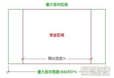 当舞台大小按宽舞台标准设定时:“最大显示区域”高度=舞台高度×(64/45)。
