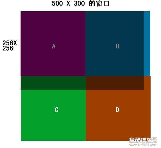 阴影区域就是可视区域 A、B、C、D就是切割的单元地图