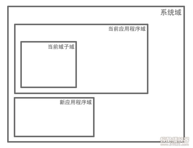 应用程序域有三种类型,系统域子域(新的应用程序域)、当前应用程序域、当前应用程序域的子域。他们的关系就像是这样