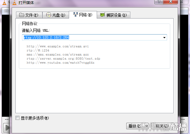 2 打开vlc plaer,打开网络串流,输入rtsp,如下图