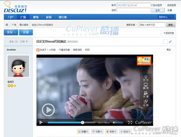 DiscuzX3.2/DiscuzX1.5酷播视频插件(添加自定义视频播放器)