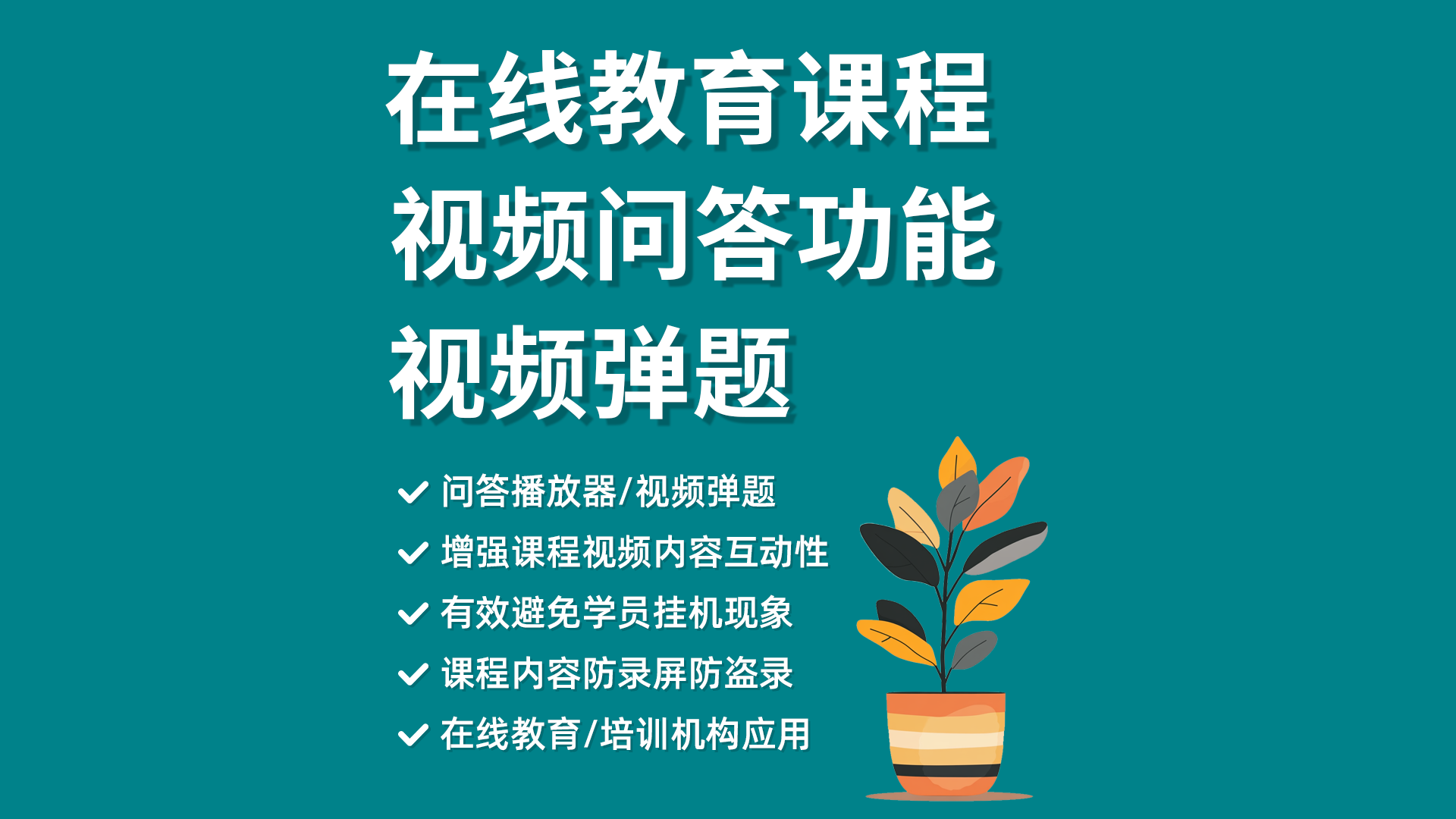 视频播放器的视频问答功能(也叫问答播放器、视频弹题、视频问答功能)是一种互动的教学功能,在教育培训机构中,用的比较多。视频问答功能,主要是在视频播放过程中,弹出问题卡片,学员回复问题后,再继续播放,增强学员的参与度和学习效果。